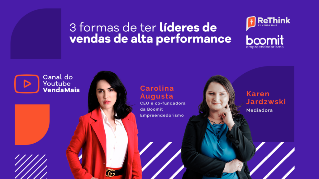 No episódio #12 do ReThink VendaMais, Karen Jardzwski, Sócia e Diretora de Treinamentos da VendaMais e Carolina Augusta, CEO e Co-Fundadora da Boomit Empreendedorismo tiveram um bate papo super bacana sobre as 3 formas de ter líderes de vendas de alta performance.